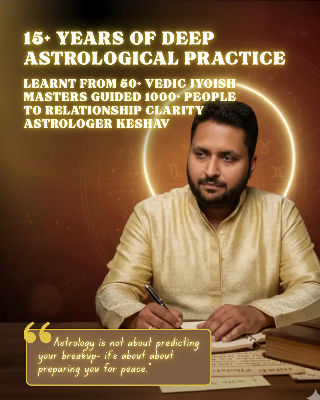 With over 15 years of experience and learning from 50+ Vedic masters, Keshav’s work goes beyond fortune-telling.